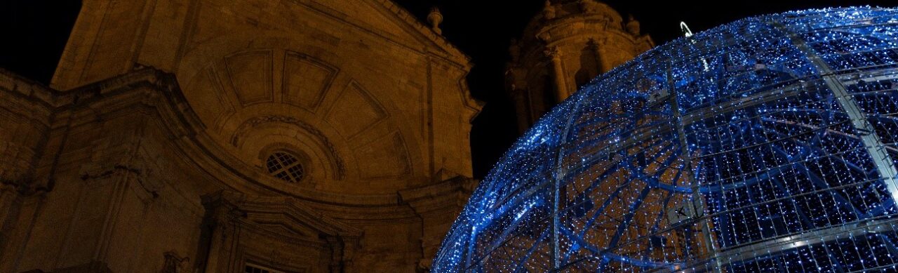 La plaça de la Catedral és un altre racó de la ciutat gaditana que es va decorar i il·luminar durant el Nadal de 2024 amb una gran bola. Això, juntament amb diversos espectacles de llum, la va convertir en un altre dels punts clau per gaudir del Nadal a Cadis, sumat a més d’un centenar de carrers que ja brillen amb una llum i un color molt especials.